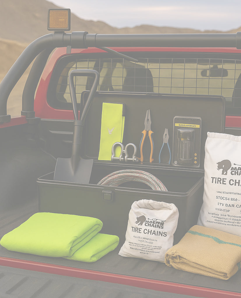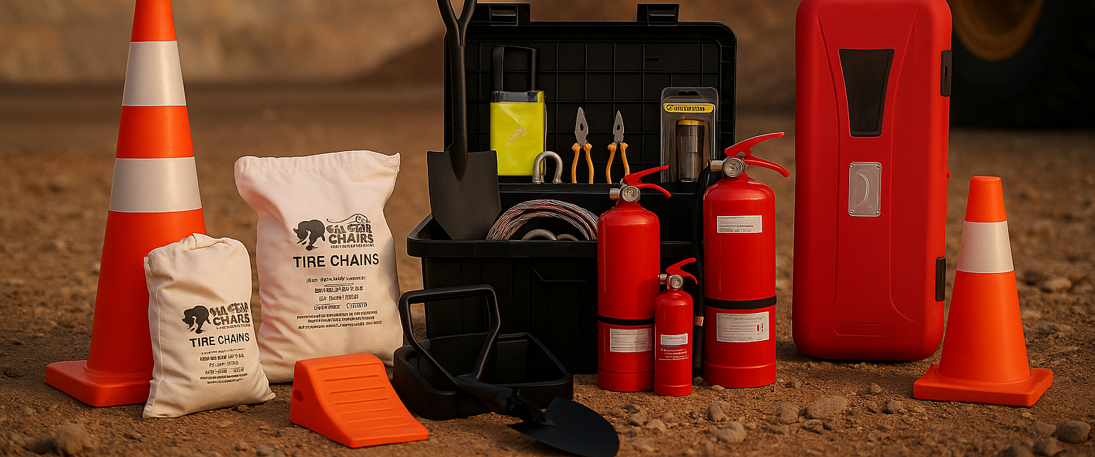 Incluye: Caja metálica 600x400x400, Estrobo, Grilletes, Saco de Yute, Frazadas, Set de Cadenas y Tensores, Set de Herramientas, Linternas, Pilas y otros.