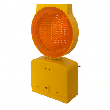 Baliza con luz amarilla intermitente.Funciona con energía solar y es compatible con todos los conos de PVC.