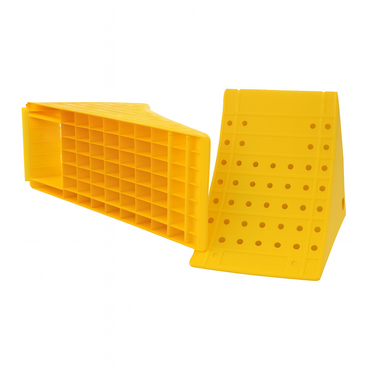 Cuña Plástica de Alta Resistencia Heavy Duty de 470X200X230mm, para un neumático diámetro 2000mm, Máxima Capacidad 30 Ton, Peso 1,68kg, Marca Mining Lockers.