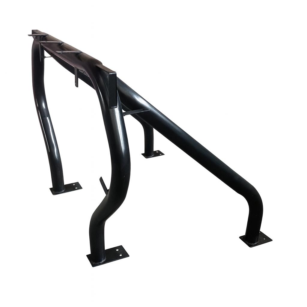 Barra antivuelco externa para camioneta minera con soporte para anclaje de baliza, pértiga y foco faenero. Acabado con pintura electroestática.