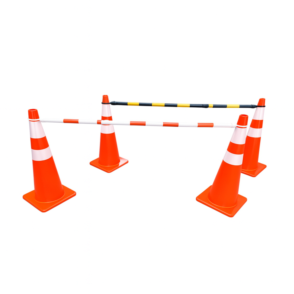 Se ajusta la argolla sobre la parte superior del cono, el largo se adapta alcanzando hasta 240 cm. Con dos conos y una barra se forma una barrera de seguridad y con una mayor cantidad de conos se puede formar una cerca o zona de seguridad.